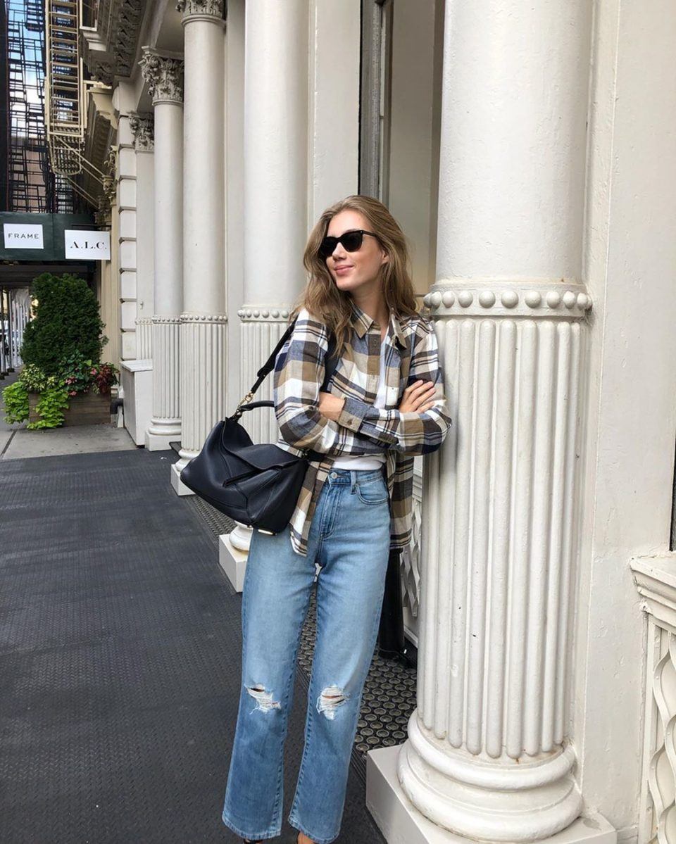 Les jeans droits taille haute sont préférables à combiner avec des choses simples et concises. Ce look est parfait pour la vie quotidienne. Cependant, si vous le souhaitez, vous pouvez toujours créer une combinaison plus audacieuse et inhabituelle. Par exemple, un jean à coupe droite et une chemise classique avec des empiècements originaux. N’oubliez pas les accessoires, mais rappelez-vous qu’il ne devrait pas y en avoir beaucoup. Un look élégant et élégant est prêt!