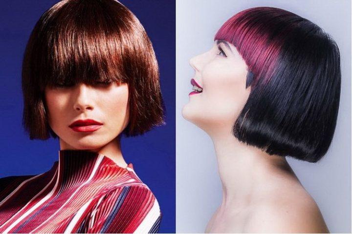 Une coupe de cheveux bob peut être avec n’importe quelle frange que vous voulez. Les variantes avec une frange latérale, ainsi que des franges obliques et déchirées, sont particulièrement bonnes. Ce look est parfait pour les types de visage rectangulaires et carrés.