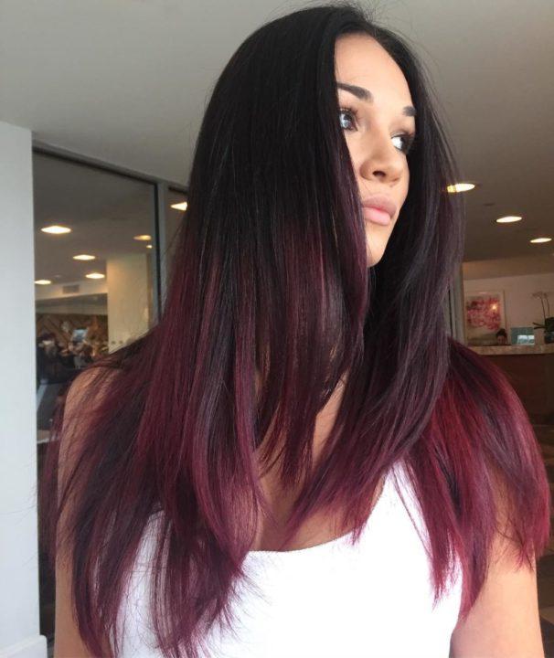 Printemps et été – il est préférable de ne pas utiliser de teinture bordeaux solide. Et utilisez des techniques à la mode d’application partielle de la couleur, telles que l’ombre, la coloration, le balayazh, le sobmre et autres.