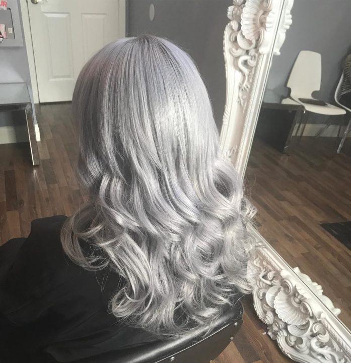 Nuance de cheveux gris clair, la plus claire de toute la palette. Il a des notes de tons gris et nacrés qui s’entremêlent magnifiquement. C’est la couleur parfaite si vous avez les yeux bleus, bleus ou gris. Le gris clair mettra en valeur leur couleur, ce qui rendra le look plus expressif.
