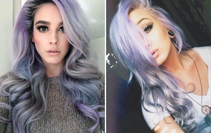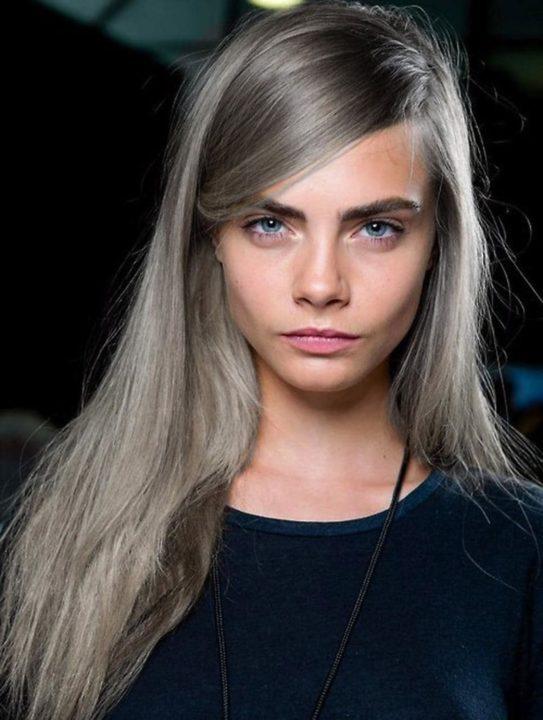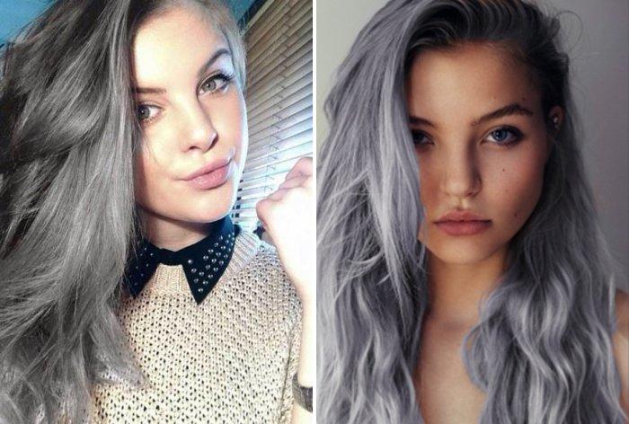 De nombreuses filles ont cette couleur dès la naissance, dont elles ne sont fondamentalement pas satisfaites. Après tout, la couleur de la souris n’a pas de saturation et ne convient pas à tout le monde. Si une telle nuance est créée artificiellement, alors plus de tons de gris et d’argent sont ajoutés à la peinture, ce qui forme finalement un beau débordement de cheveux argentés à la lumière.