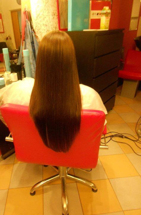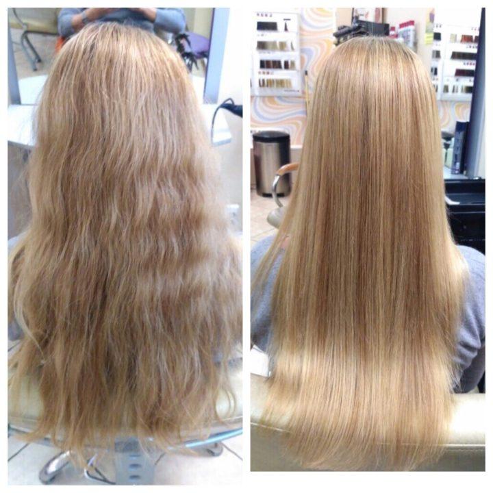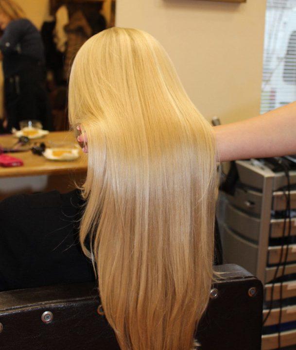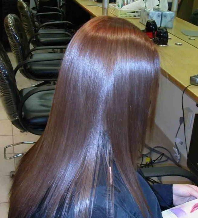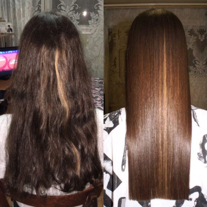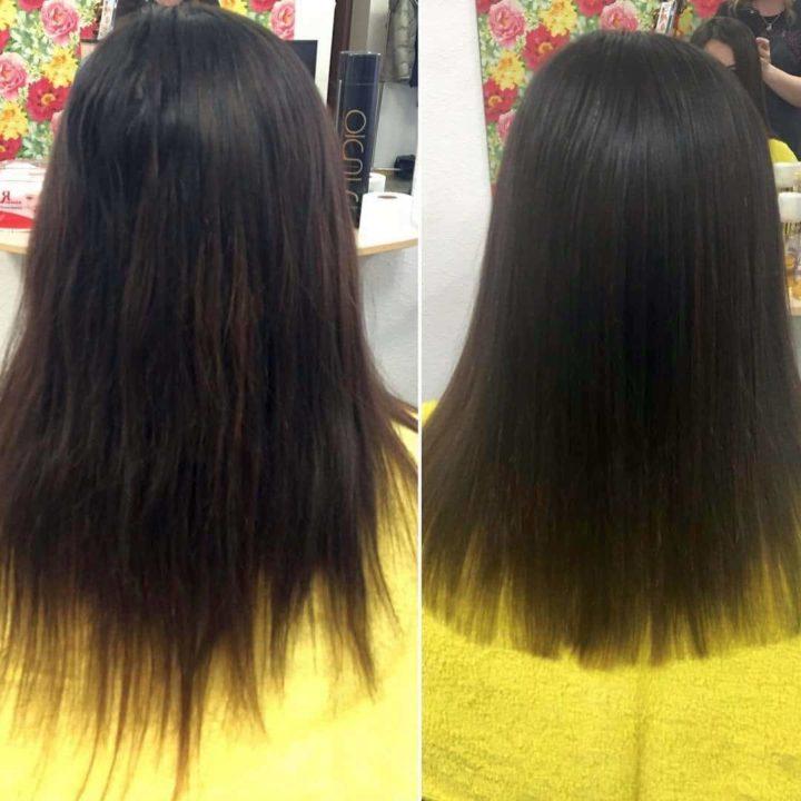 Tout d’abord, le maître lave vos cheveux avec un shampooing spécial, puis les sèche un peu. Il applique ensuite un masque qui reste sur vos cheveux pendant 10 minutes. Et après cela, le maître applique la composition elle-même sur les cheveux pour les protéger.