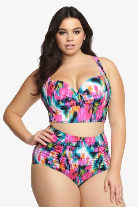 L’un des imprimés les plus tendances de l’année est géométrique. Et surtout les stylistes conseillent aux femmes rondes de choisir des maillots de bain avec des cercles, ainsi que des rayures. Faites également attention à la palette multicolore de cette conception.