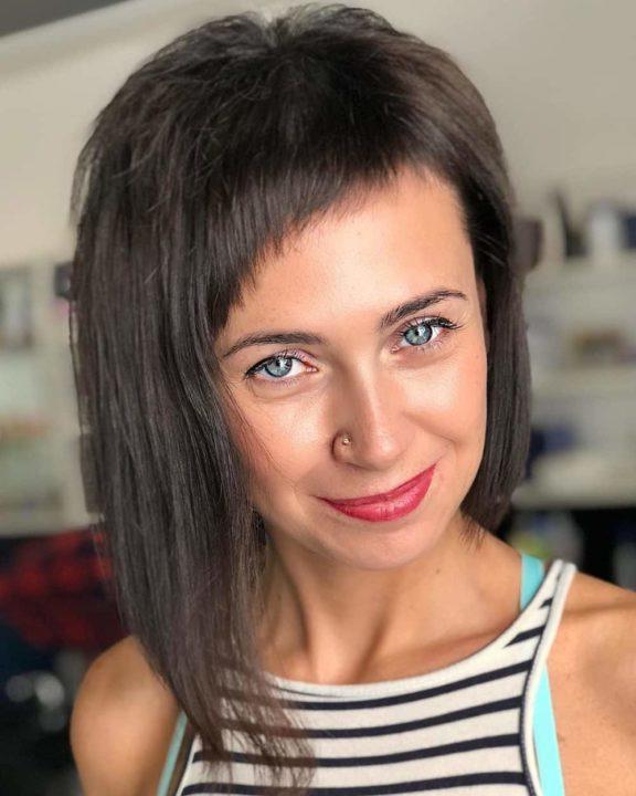 La frange courte est une tendance élégante pour l’été 2021. Il peut être droit, oblique ou latéral – seule sa longueur est importante ici. Une frange courte aide à ouvrir le visage, mais en même temps, elle peut mettre en évidence divers défauts, tels qu’un front large, un ovale trop allongé et des pommettes pointues.