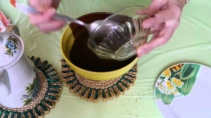 Tout d’abord, préparons une petite tasse de café et refroidissons-la. Ajoutez ensuite 2 cuillères à soupe. café et 3 c. revitalisant pour cheveux, bien mélanger le tout et appliquer sur les cheveux pendant 50 minutes.