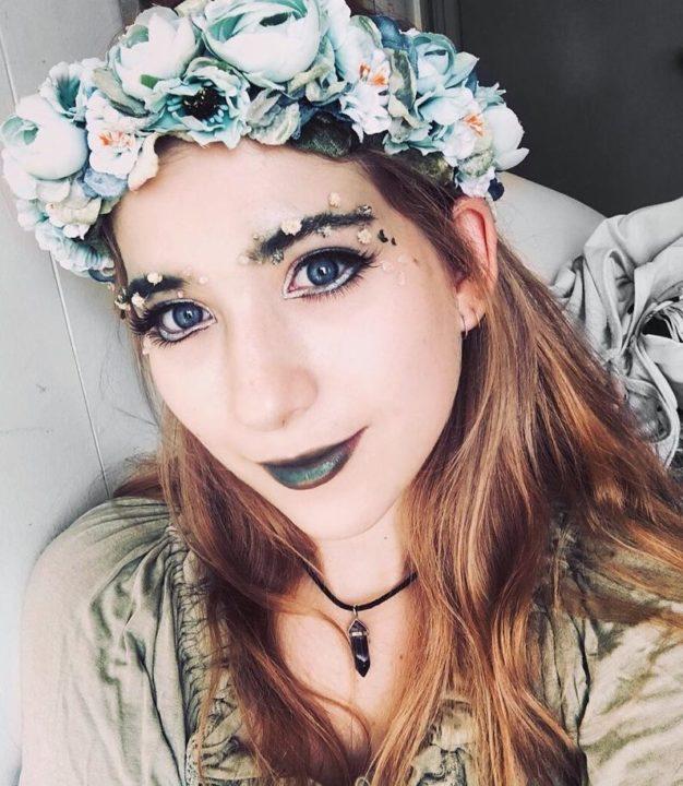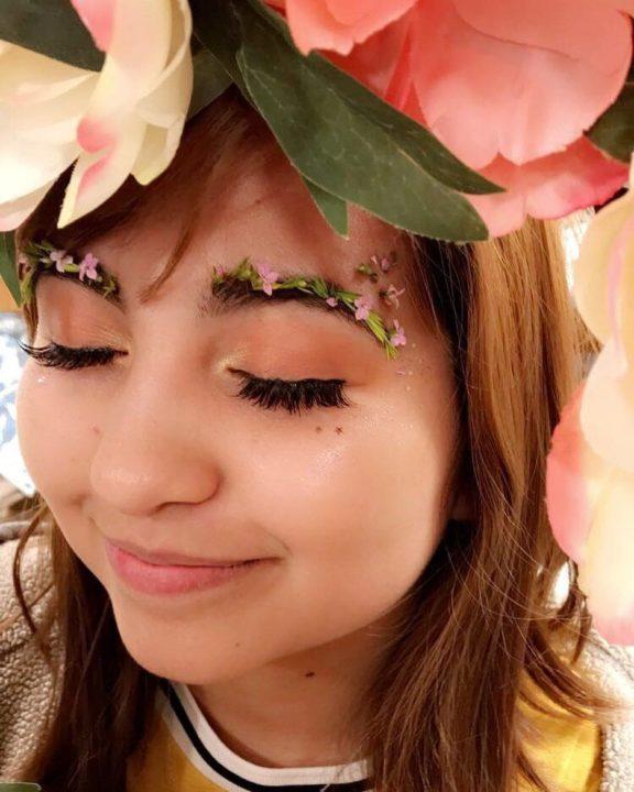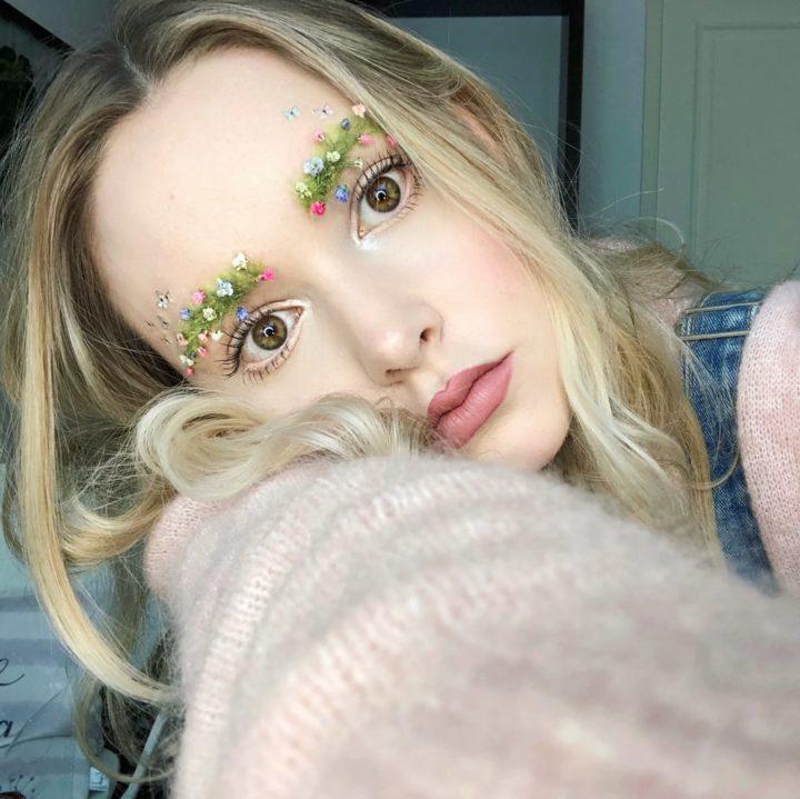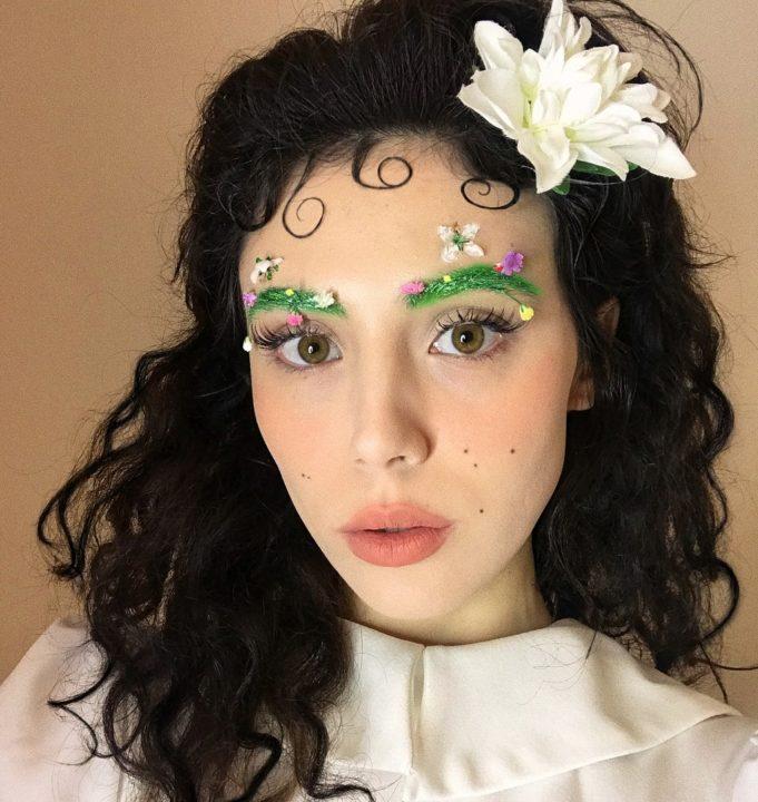 Si vous n’avez pas été impressionné par la peinture habituelle des sourcils depuis longtemps, vous devez faire attention aux sourcils printaniers. Ces sourcils sont soulignés de peinture verte avec des morceaux de pétales de différentes couleurs. Les pétales sont collés avec de la colle spéciale dans la zone des sourcils, ce qui donne l’impression que vous regardez un panneau de fleurs.