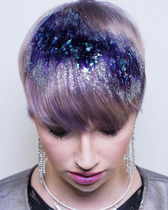La nouvelle coloration à la mode – cristal, vous permettra de créer un jeu de couleurs incroyable sur vos cheveux. La peinture utilisée dans cette coloration a une couleur violette avec l’ajout de paillettes, qui imite magnifiquement le motif du minéral geodan. La coloration cristalline est également connue sous un autre nom, sous le nom de géode.