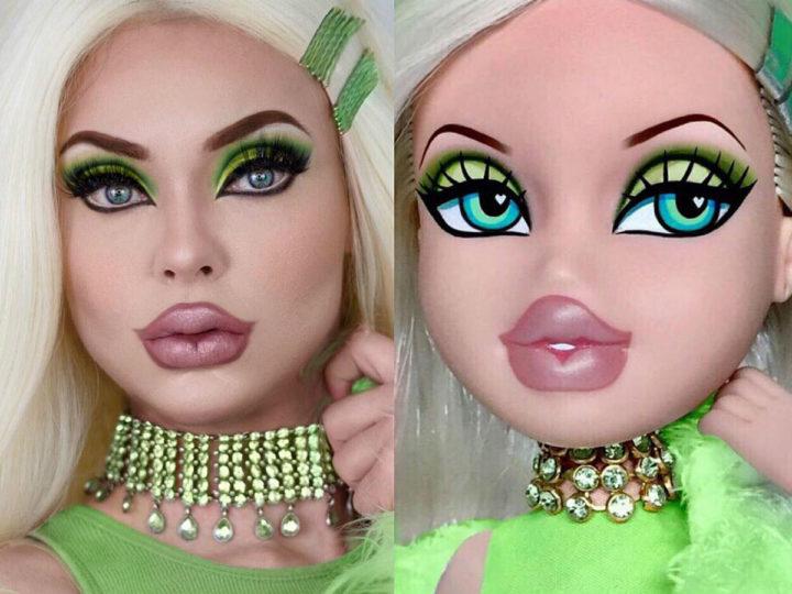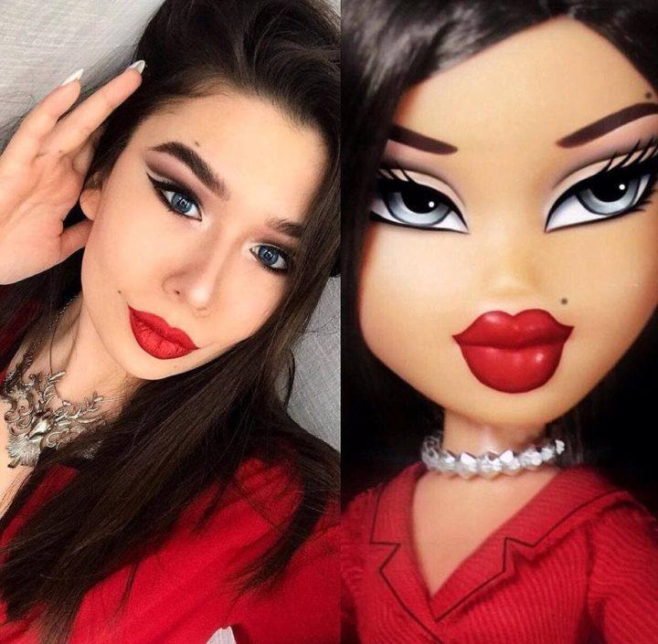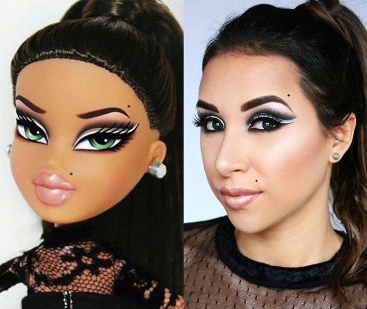 Un maquillage très inhabituel, et parfois même effrayant, à la manière d’une poupée Bratz, a conquis Instagram en 2022. Vous ne devez pas utiliser un maquillage similaire pour tous les jours, mais il est préférable de le conserver pour une soirée à thème ou Halloween. Parfois, un tel maquillage peut sembler plus ou moins attrayant, mais le plus souvent, il est trop brillant, rugueux et peu naturel.