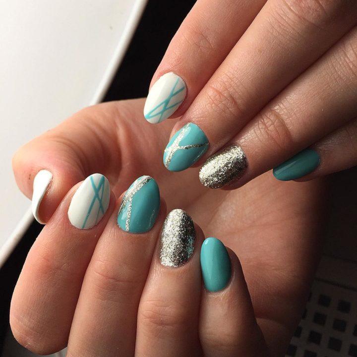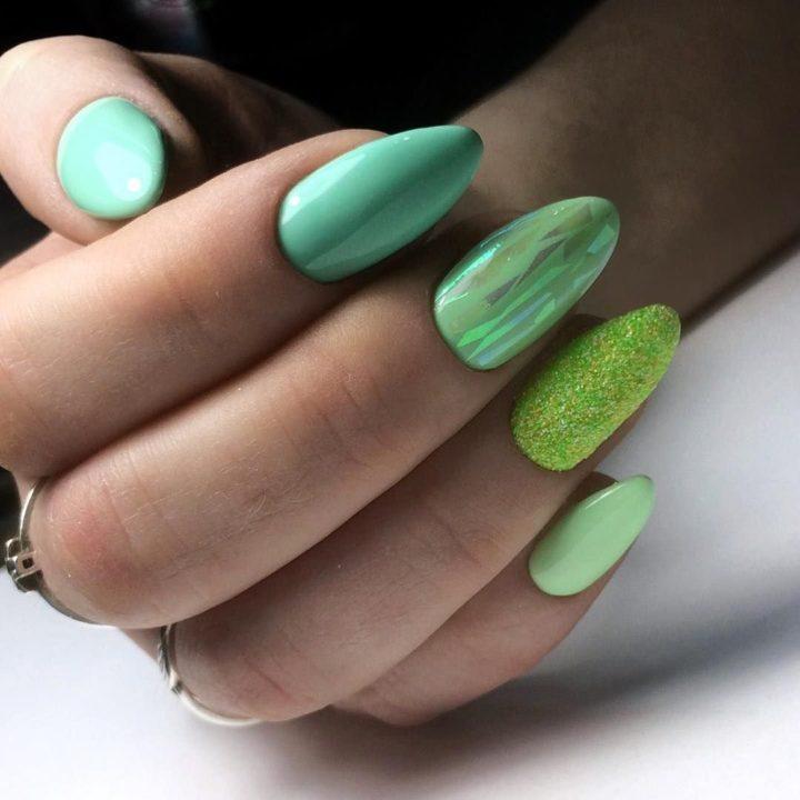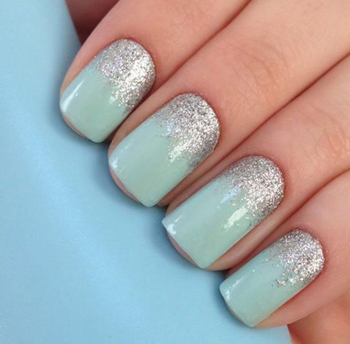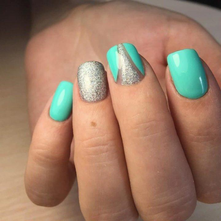 Les étincelles dans une manucure à la menthe lui donneront un éclat particulier au soleil. Imaginez à quel point vos ongles à la menthe attireront l’attention en combinaison avec des looks d’été volants.