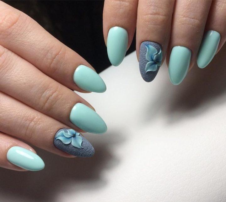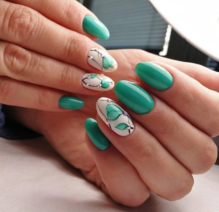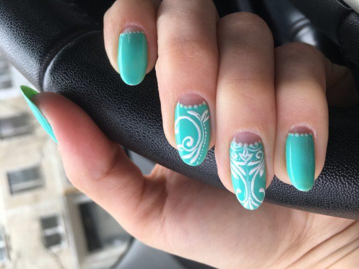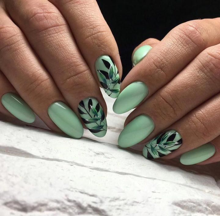 Maintenant, nous voyons souvent des filles avec des conceptions de manucure douces et discrètes. N’importe quel motif est parfait pour une manucure à la menthe. Cela peut être un dessin d’un lapin, des fleurs, des points ordinaires, un motif géométrique. Tout ce que vous ou votre manucure pouvez imaginer.