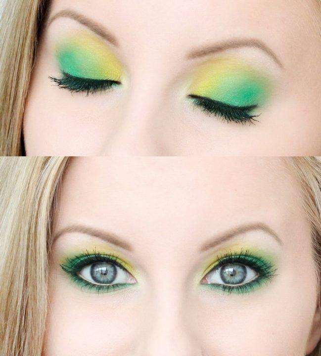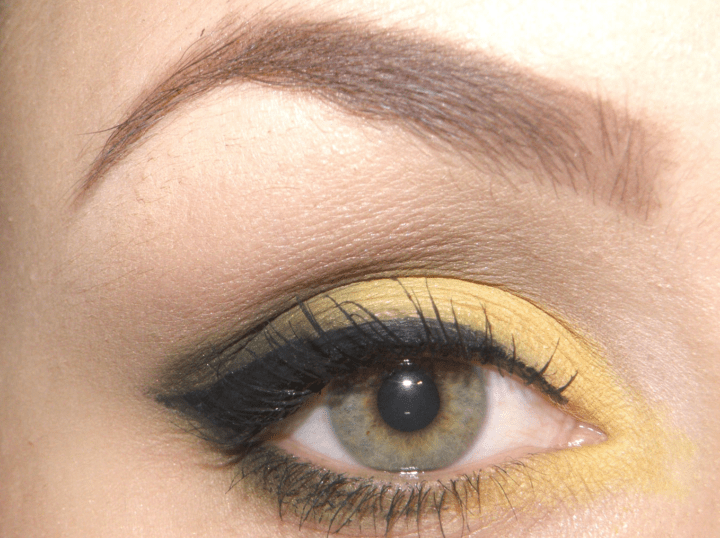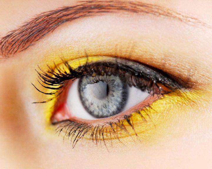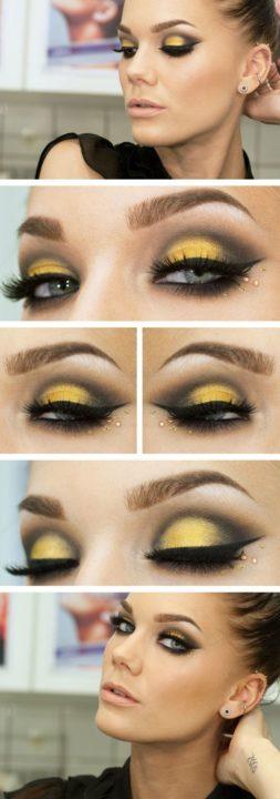 Le fard à paupières jaune est une excellente base pour un maquillage des yeux plus complexe et plus charbonneux. Utilisez des flèches noires, bleues ou vertes en dessous pour un look plus dynamique.