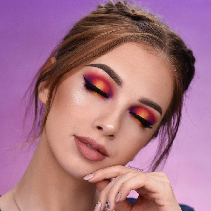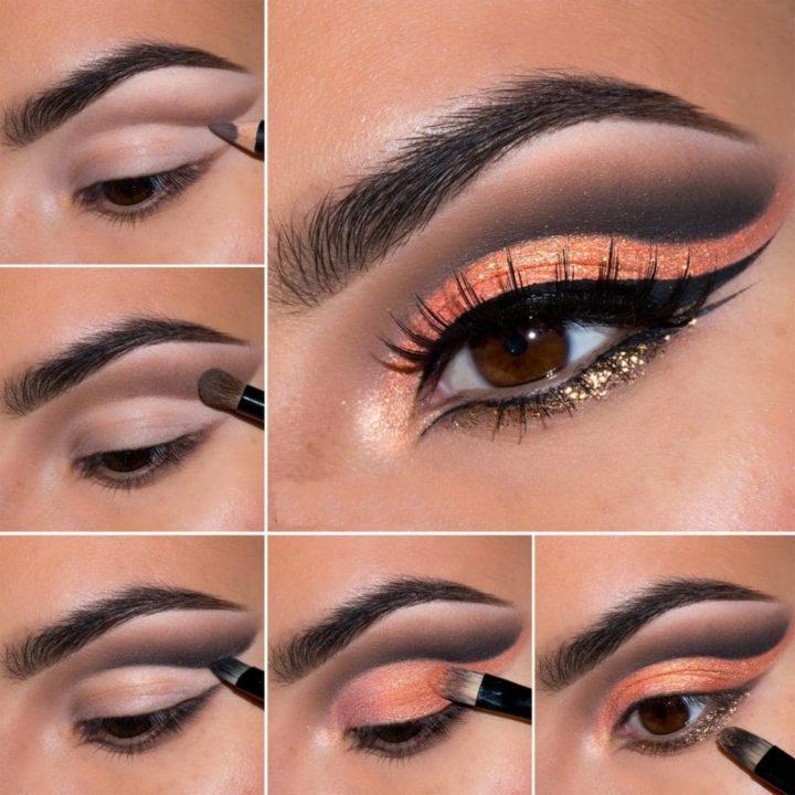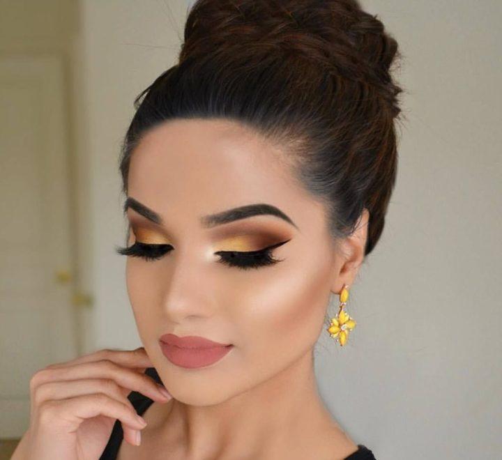 Un maquillage oriental très lumineux nous fait penser aux films indiens, où les personnages principaux du film dansent et chantent tout le temps. En 2019, la mode du maquillage des yeux de style oriental revient. Encore une fois, vous pouvez dessiner de belles flèches avec de longues queues de cheval qui peuvent parfaitement mettre en valeur le contour de vos yeux.
