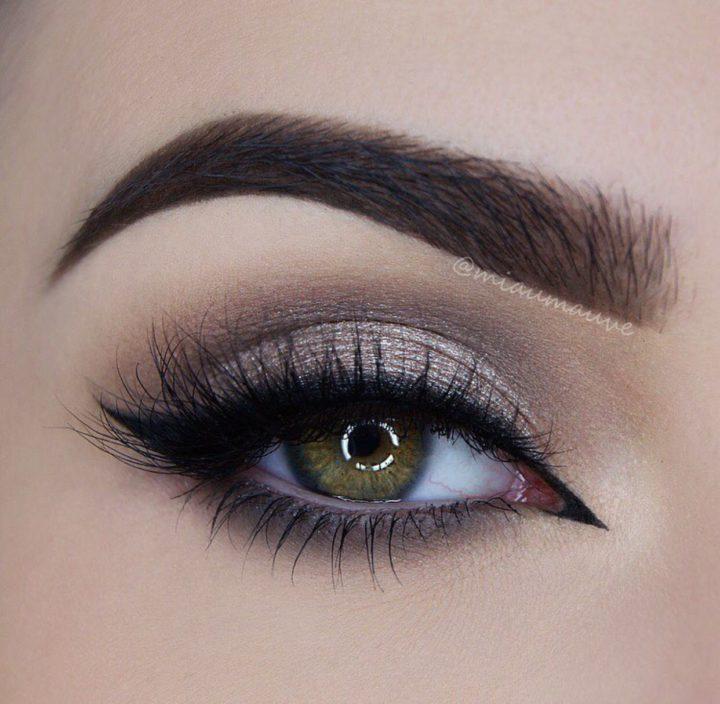 Grâce aux flèches argentées, vous pouvez facilement rendre votre maquillage lumineux. Vous pouvez utiliser de telles flèches sans aucune ombre, il suffit de teinter les cils avec du tapis en laiton.