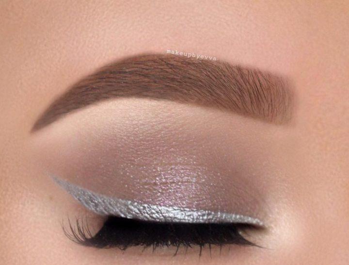 Les flèches noires et l’eyeliner mettront parfaitement en valeur les ombres argentées. Qu’elles soient mates, nacrées ou ajoutées de paillettes.