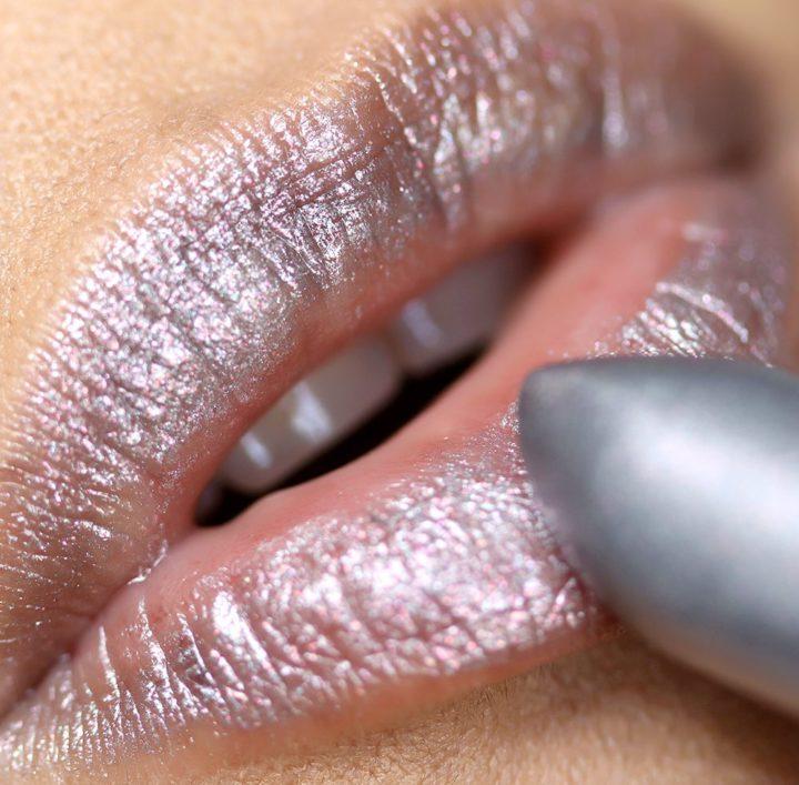 Bien que le rouge à lèvres métallique soit une tendance beauté à la mode, il n’est pas particulièrement adapté à une utilisation dans la vie de tous les jours. Le rouge à lèvres argenté sur les lèvres donne une couleur métallique qui les rend pâles. En couleur pure, cette nuance ne peut être utilisée que pour des séances photo et des performances, mais dans la vraie vie, il vaut la peine de teinter toute autre couleur avec cette nuance.
