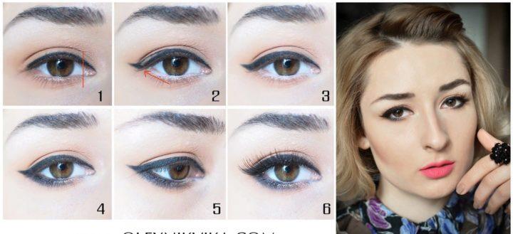 Le maquillage avec un crayon avec un dessin du siècle entier peut être rendu très élégant et audacieux. Pour ce faire, sortez légèrement du contour et faites un peu de plumes.