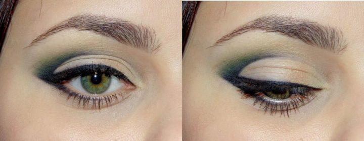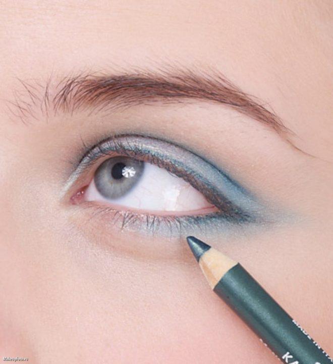 Le maquillage des coins à l’aide d’un crayon est très similaire au maquillage des œillets. La seule différence est qu’il n’y a pas de lignes lisses ici. Vous assombrissez immédiatement le coin de l’œil avec de l’ombrage, puis l’ombrage.