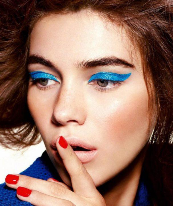 Le fard à paupières bleu et l’eyeliner bleu ne conviennent pas seulement aux yeux bleus, car le bleu a également ses propres nuances. Les propriétaires d’yeux bruns, verts, gris et noirs peuvent facilement essayer cette nuance sur eux-mêmes.