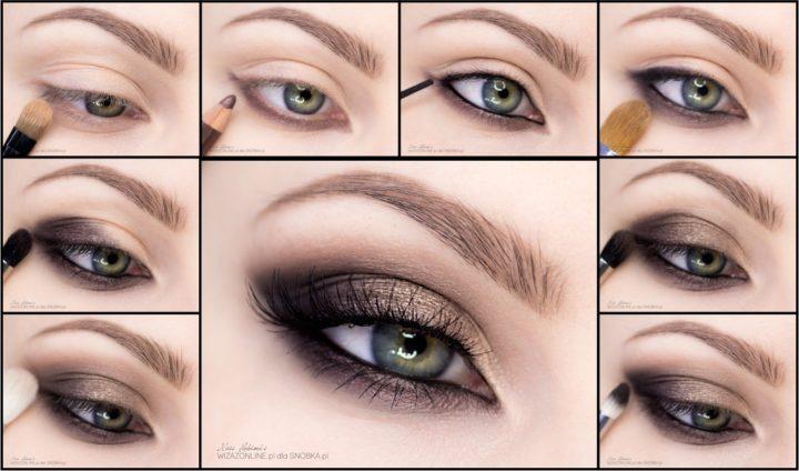 Un maquillage des yeux clair dans un ton brun ne peut que souligner la couleur de vos yeux, ainsi que les mettre en valeur un peu. Il n’est pas tape-à-l’œil, calme et convient le mieux aux activités quotidiennes, à la marche ou simplement au shopping.