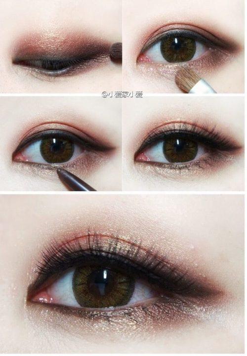 Pour ce faire, appliquez une teinte claire sur la paupière inférieure, puis juste en dessous de la ligne d’ombre claire, appliquez doucement les teintes foncées. C’est alors qu’un effet similaire est obtenu.