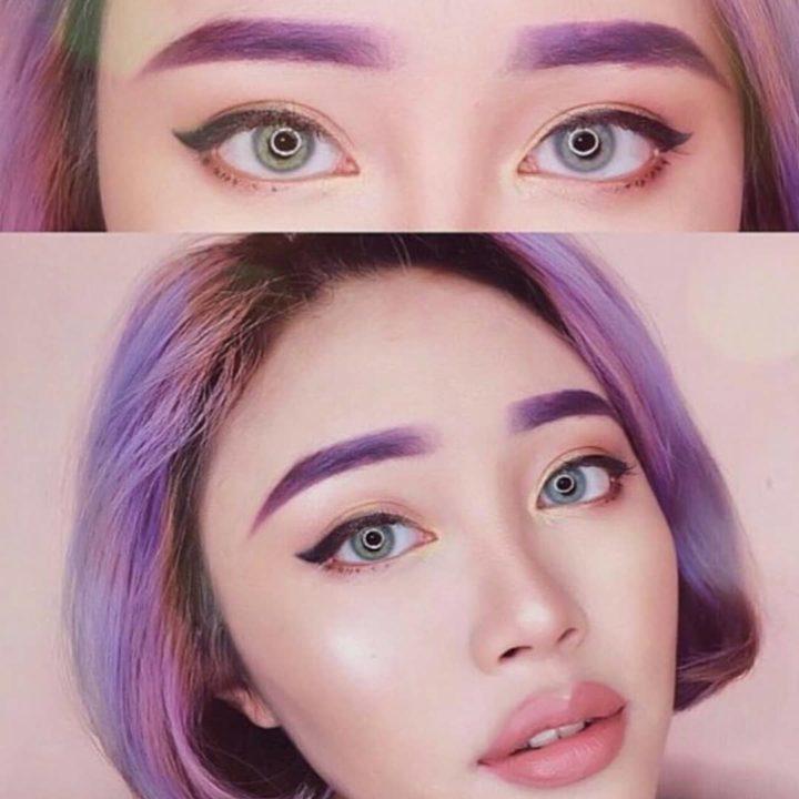 Presque toutes les femmes coréennes ont les yeux foncés, c’est pourquoi elles utilisent de plus en plus des lentilles colorées pour diversifier leur apparence. Cet aspect de la performance du maquillage coréen est complètement facultatif, mais si vous n’êtes pas opposé à l’expérimentation, allez-y.