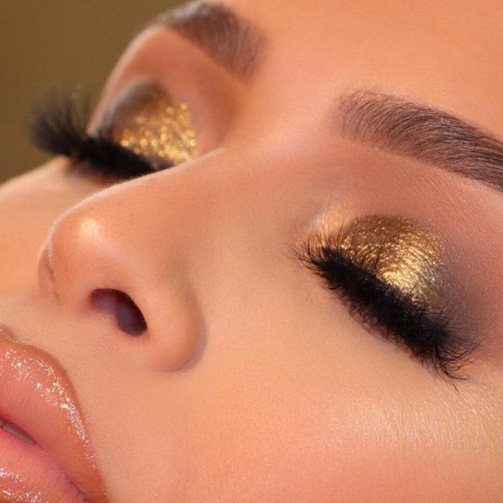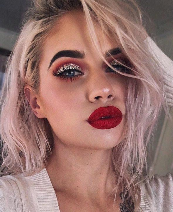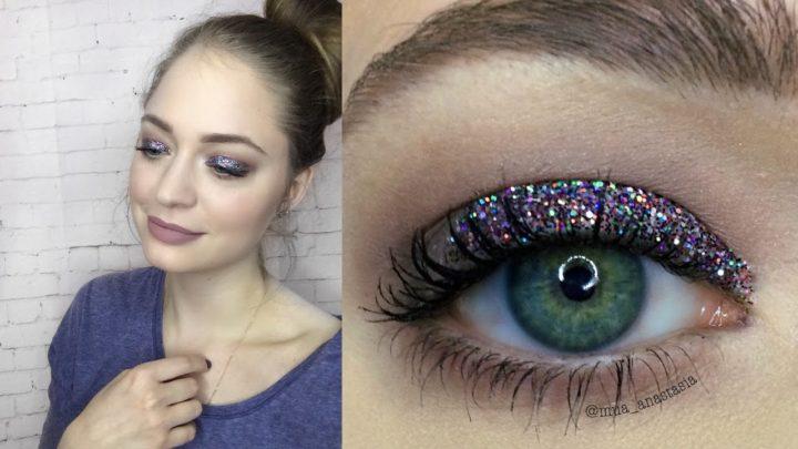 Les ombres à paupières ajoutées de paillettes sont un excellent moyen de créer un maquillage inoubliable. Le plus souvent, un tel maquillage convient à une fête d’entreprise pour le Nouvel An ou dans un restaurant. Votre fard à paupières peut contenir de grandes étincelles ou des petites. Parfois, les filles ajoutent des étincelles au coin interne de la paupière.