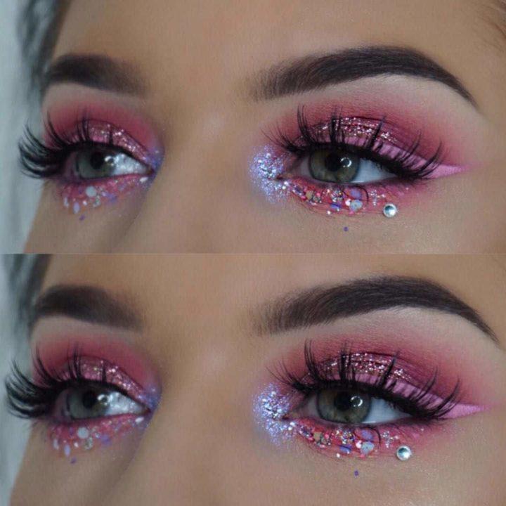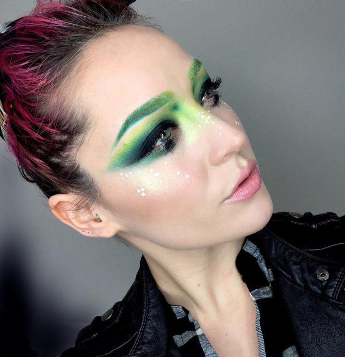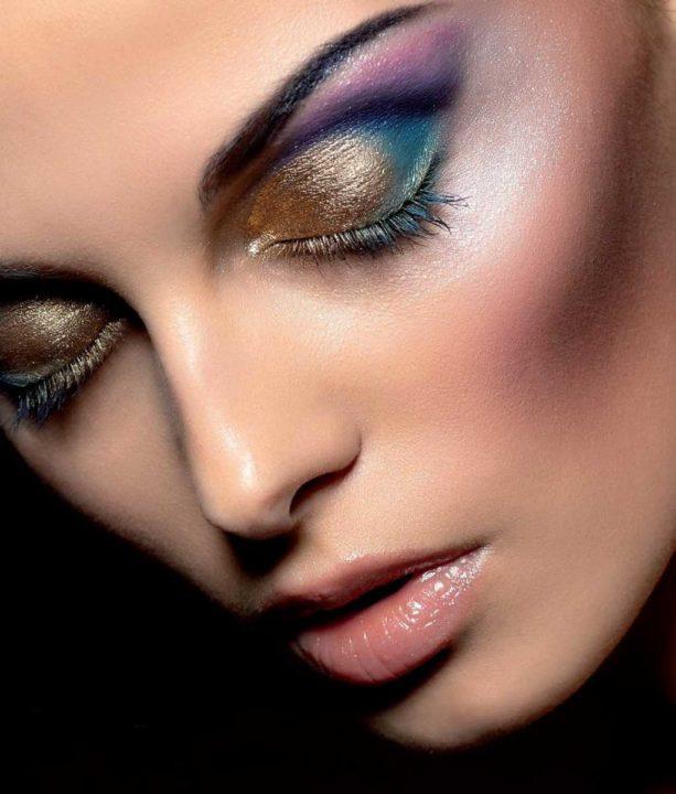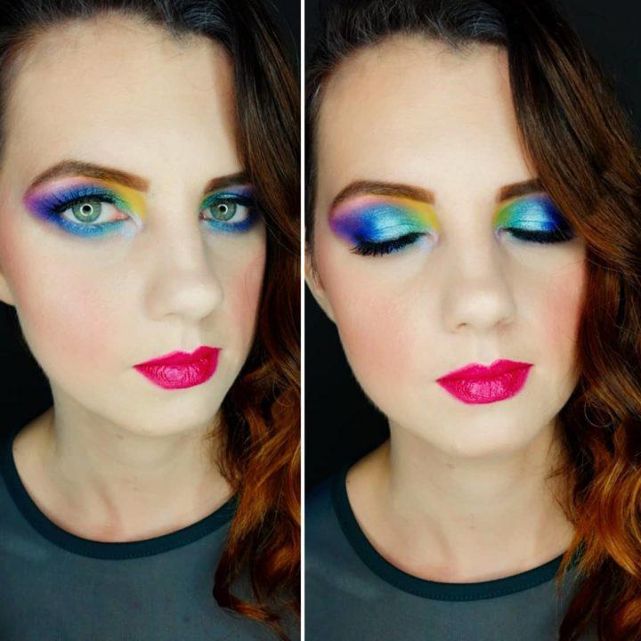 Toutes les femmes ne choisissent pas le maquillage multicolore, car il est très brillant et accrocheur. Mais les événements d’entreprise sont différents et si le thème de la fête vous permet de choisir ce type de maquillage, alors foncez pour des impressions colorées.