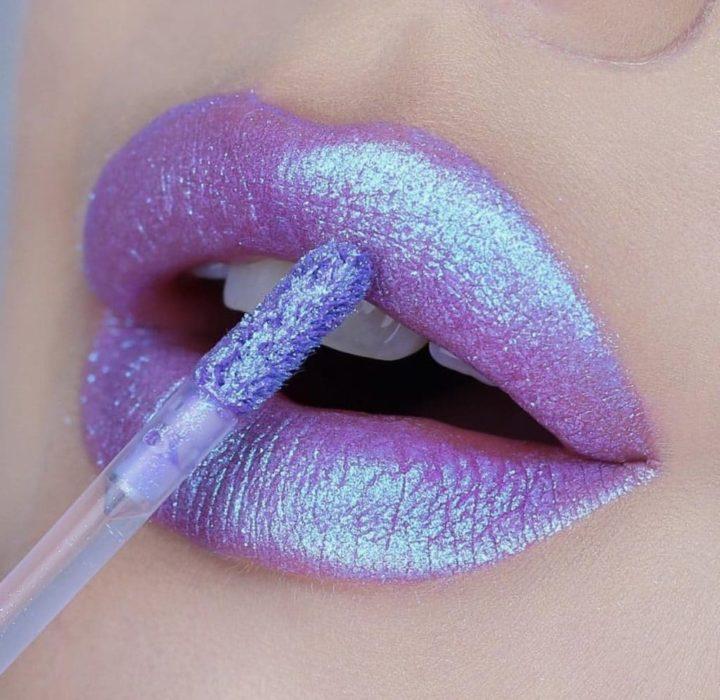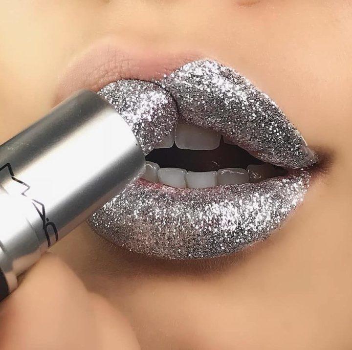Utilisez de nouvelles nuances sous forme de rouge à lèvres métallique, argent, or, lavande, holographique et autres. Le rouge à lèvres scintillant est l’option parfaite pour rehausser votre look de vacances. Vous pouvez également utiliser certains types pour la vie quotidienne ou pour le temps de travail. Mais ici, cela vaut déjà la peine de ramasser des étincelles avec un scintillement moins prononcé dans la composition.
