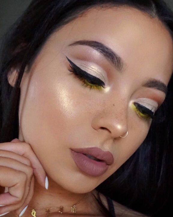 Le maquillage blanc évoque des pensées de froid, quand le givre dessine de beaux motifs sur le verre embué. Les maquilleurs comparent souvent les ombres blanches à la neige blanche qui enveloppe tout en hiver. Sous vos yeux, ce morceau de « neige » aidera à créer un maquillage luxueux. Après tout, à l’aide d’ombres blanches, des options de maquillage complexes sont créées.