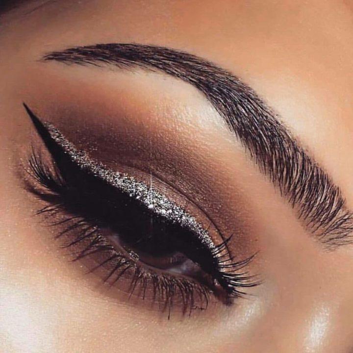 Le maquillage argenté à l’hiver 2022 est particulièrement pertinent. C’est une excellente solution pour tous les jours, pour le travail, ainsi que pour célébrer le Nouvel An. Après tout, les ombres argentées avec l’ajout de paillettes créeront un maquillage des yeux magnifique, accrocheur, mais en même temps très attrayant.