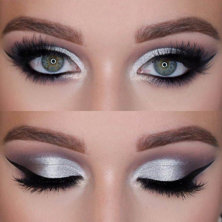 Le maquillage argenté fera de vous une beauté froide et inaccessible. Les ombres peuvent être choisies en mat ou en brillant. Et si vous voulez créer un look festif, utilisez des ombres avec de grandes étincelles.