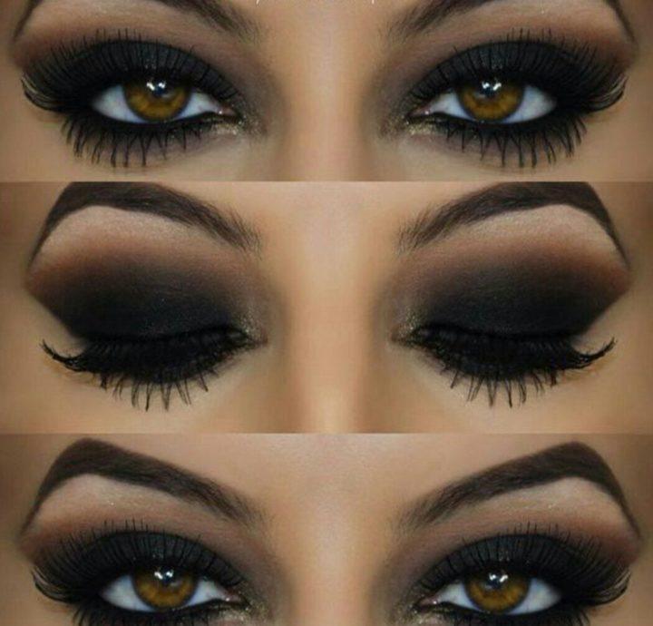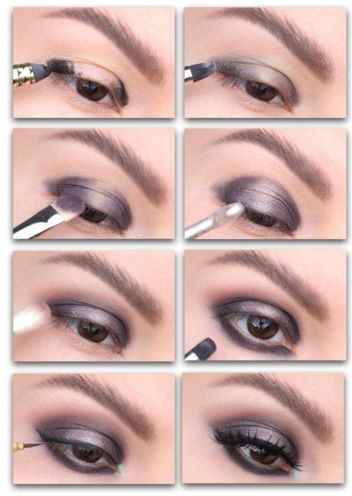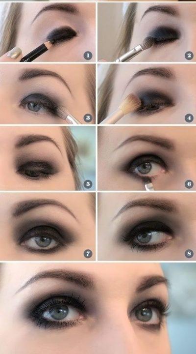 Si vous avez de petits yeux, cette technique particulière peut les agrandir visuellement. La glace fumée convient aux yeux bruns, bruns foncés, noirs, verts, bleus et autres. Il est préférable d’utiliser un eye-liner ou un crayon noir ici, ainsi que du mascara.