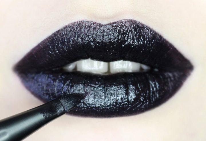 Essayez d’utiliser du rouge à lèvres noir avec des flèches noires ou des cils légèrement teintés. Ensuite, votre image se révélera assez harmonieuse et vos lèvres seront le seul accent sur votre visage.