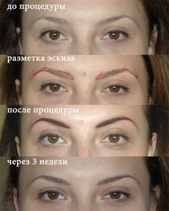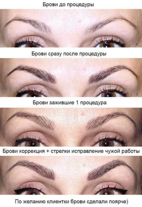 La première mise en forme des sourcils est effectuée un mois après l’intervention. Mais le suivant après 1-2 ans, en fonction du résultat du travail et de la qualité du matériau.
