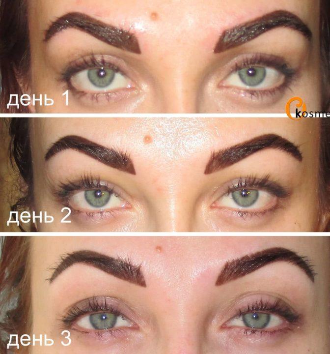Si vous suivez toutes les règles, la cicatrisation des sourcils sera indolore dans les 5 à 10 jours. La technique du maquillage permanent influence également ici. La méthode capillaire guérit plus rapidement, mais l’ombrage prend un peu plus de temps.