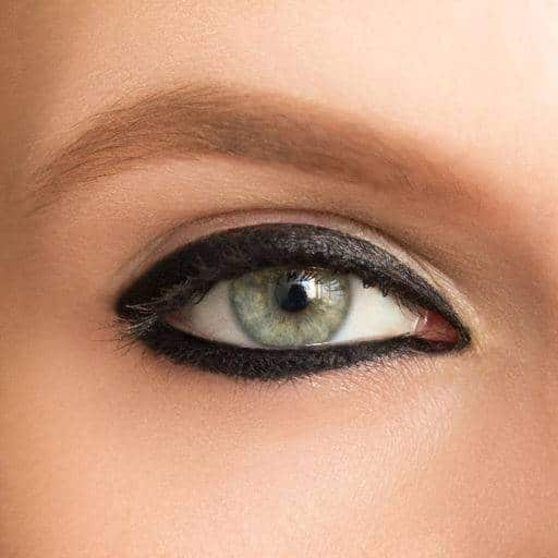 Ensuite, à l’aide d’un crayon noir, tracez une flèche le long des paupières supérieures et inférieures le long de la croissance des cils.
