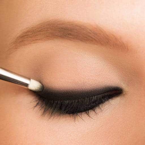 En haut de la flèche noire, appliquez des ombres sombres sur la paupière. Il peut être noir ou graphite. Et un peu plus haut est doré ou beige, après quoi ils doivent être bien ombragés pour qu’il y ait une transition de l’obscurité à la lumière.