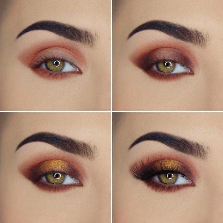 Pour créer un maquillage harmonieux et discret, utilisez alors des ombres marron, beige, or, ocre, terre cuite. Ils mettront magnifiquement en valeur la couleur ambrée, la rendant un peu plus brillante.