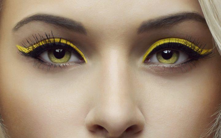 Mais pour l’été, lorsque vous allez à la plage ou simplement pour une promenade, vous pouvez magnifiquement ombrer les yeux ambrés à l’aide d’un eye-liner jaune ou vert.