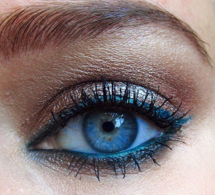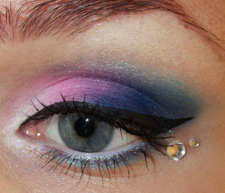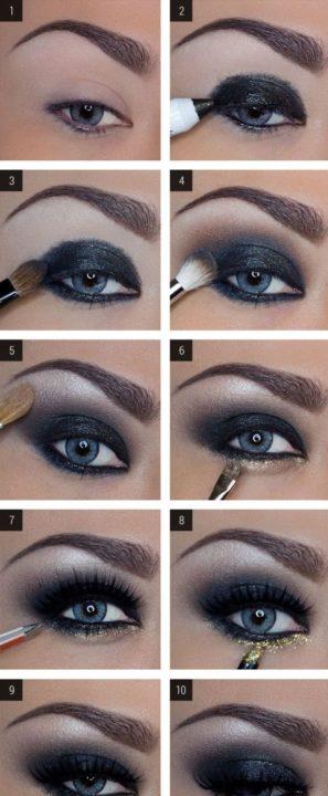 Pour la couleur bleue des yeux pour la soirée, vous pouvez ramasser des ombres bleues, azur et noires. Ils peuvent être saturés d’étincelles ou de paillettes.
