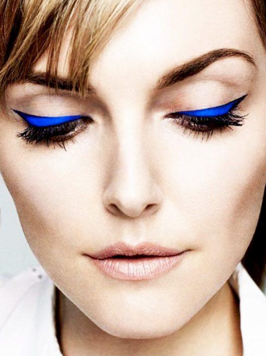 Mais non seulement l’eyeliner noir vous conviendra sous les yeux bleus, mais aussi le bleu et le bleu. Il viendra en contraste lumineux avec la couleur de vos yeux et votre maquillage se révélera réussi et beau.
