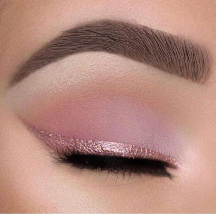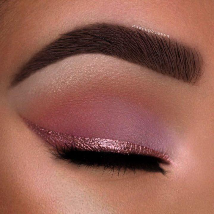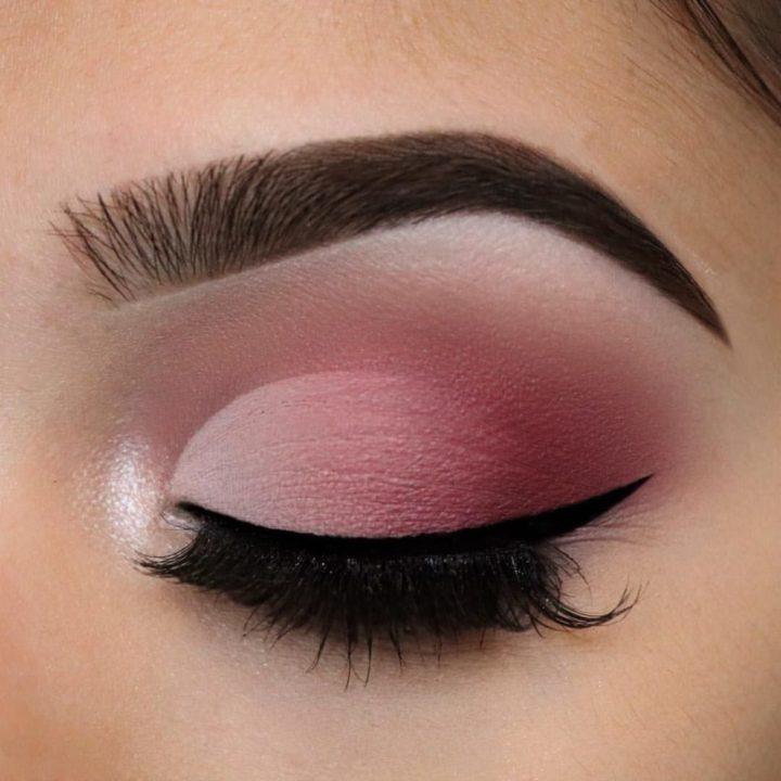 Les ombres à paupières roses peuvent avoir une texture mate, brillante ou scintillante. Ils sont disponibles en versions liquide et sèche. Si vous êtes nouveau dans l’utilisation du fard à paupières rose, il vaut la peine de n’utiliser que des versions sèches et solides du fard à paupières. Il est plus facile de travailler avec eux, et en cas d’application infructueuse, il est facile de les essuyer.
