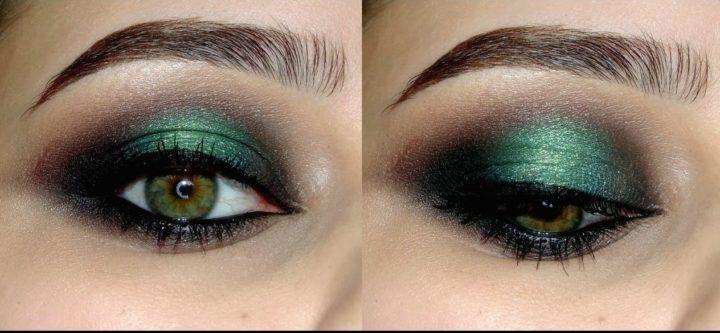 La glace fumée verte a l’air très noble et chère. Pour une couleur plus profonde, utilisez un fard à paupières pailleté et une texture mate pour plus d’expression.