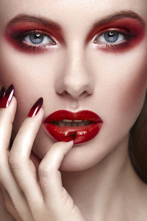 La glace fumée rouge est considérée comme la plus choquante. Il ne convient pas à toutes les femmes, alors faites attention à la sélection d’une nuance de rouge.