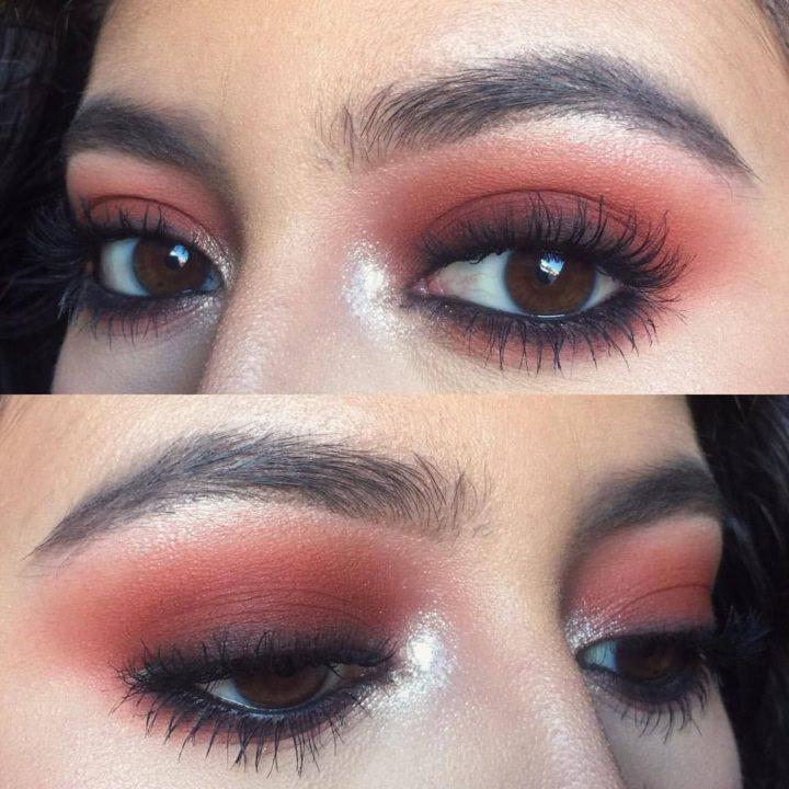 - Comme mentionné ci-dessus, appliquez un apprêt sur les paupières et un correcteur sous les yeux. Ensuite, prenez un fard à paupières noir mat et à l’aide d’un pinceau plat, appliquez un peu sur le coin de votre paupière externe.