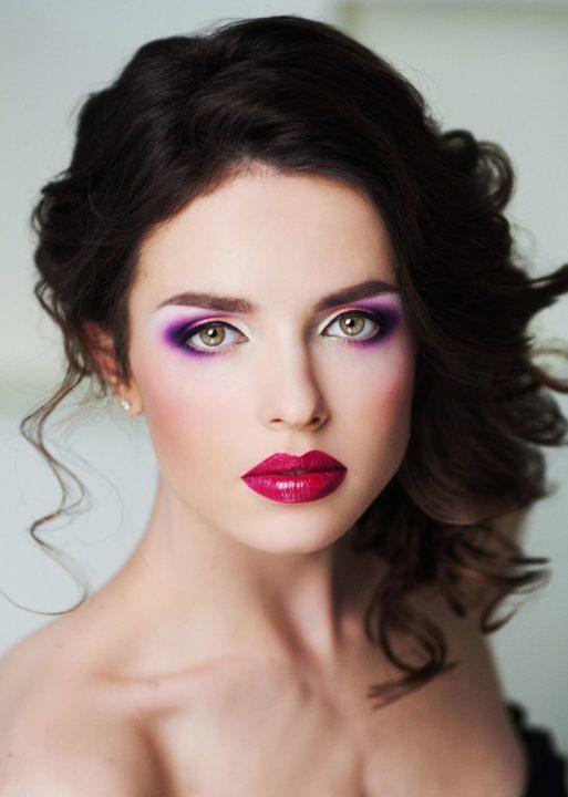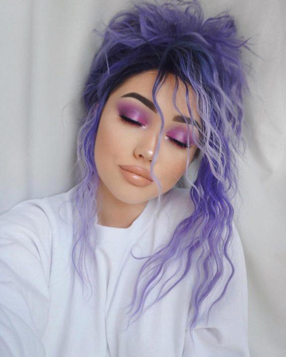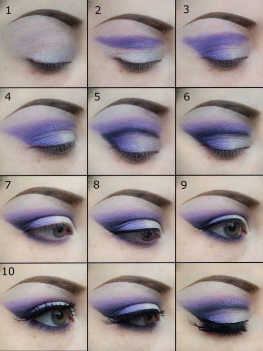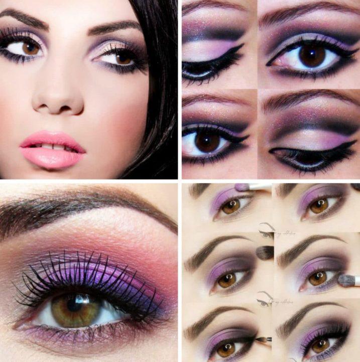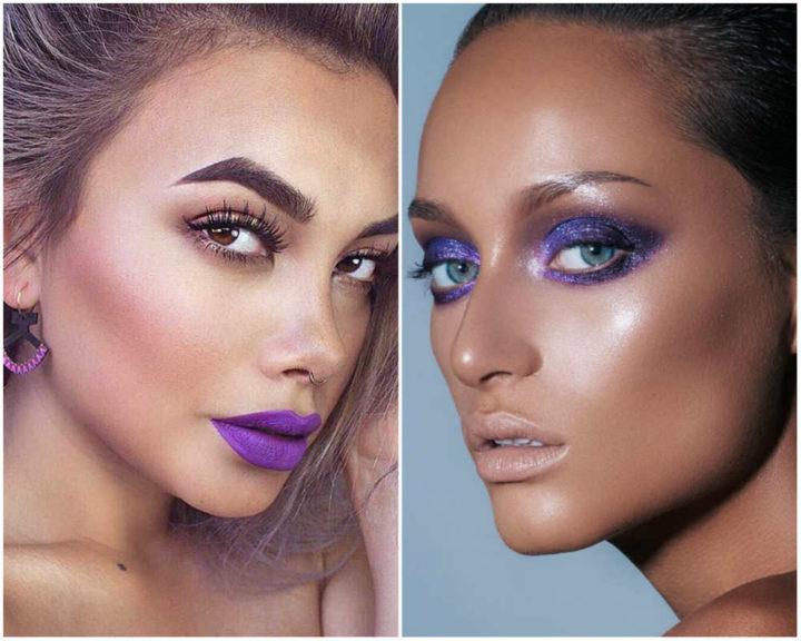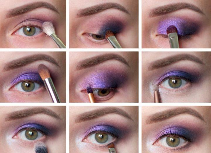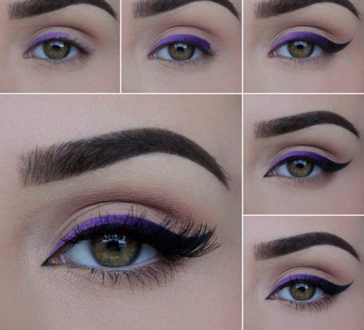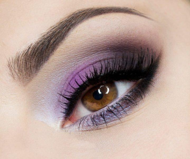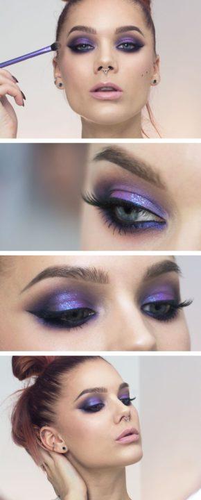 Il existe de nombreuses variantes avec des ombres violettes. Vous pouvez facilement utiliser un simple maquillage violet pendant les heures de travail ou simplement souligner un look de soirée gracieux avec un maquillage chic.