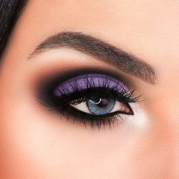 Les ombres à paupières violettes vont bien avec un eye-liner noir ainsi qu’avec un crayon. Le mascara noir complètera votre maquillage des yeux parfait, même si vous l’utilisez au minimum.
