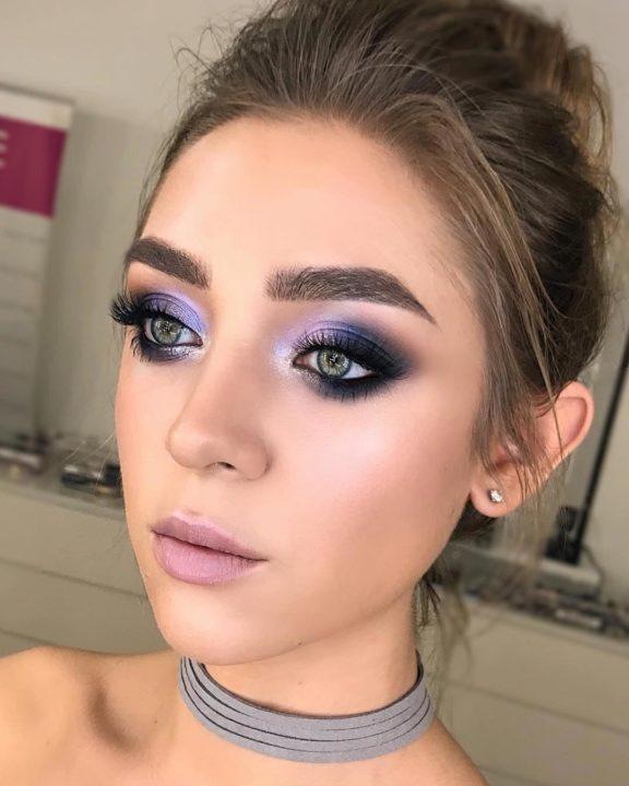 Les yeux sombres de glace fumée ont toujours été considérés comme le maquillage de soirée le plus spectaculaire. Ce maquillage peut être fait en noir, violet et autres couleurs. Mais c’est dans le ton violet que le maquillage est plus intense et festif.