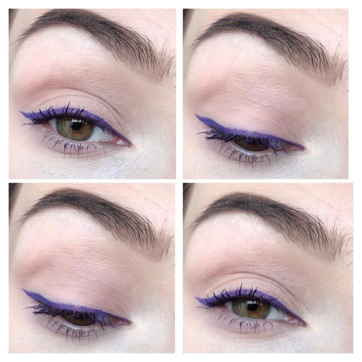 Vous pouvez également vous peindre des flèches violettes devant vos yeux, sans ajouter d’ombres. Utilisez simplement un peu de mascara et votre maquillage sera léger et beau. Vous pouvez combiner les deux couleurs noir et violet pour créer des flèches ombrées uniques.