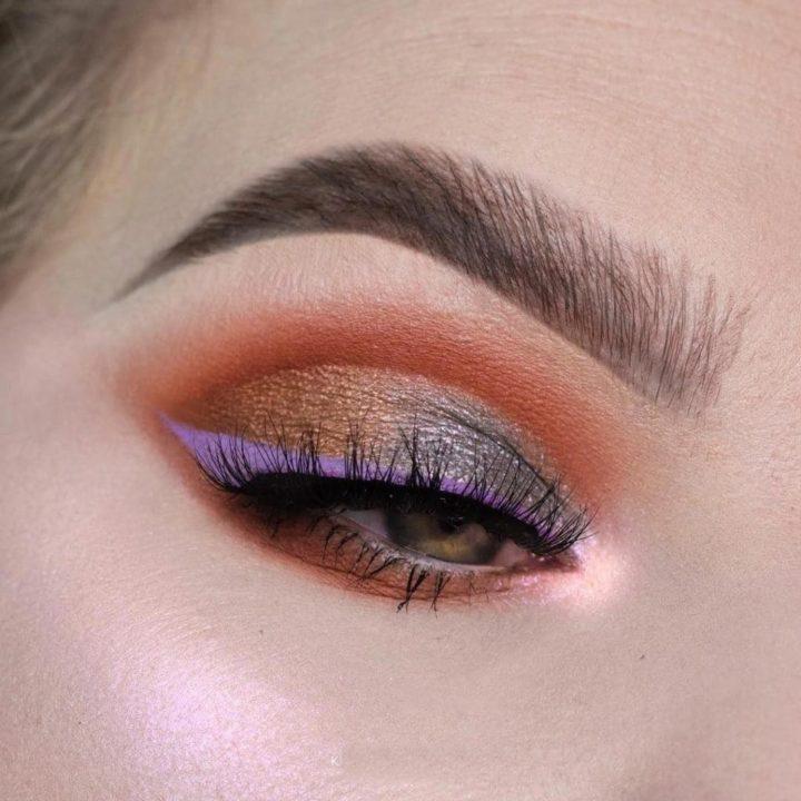 Ce maquillage a toujours attiré de nombreuses femmes. Les nuances de violet peuvent être combinées avec le blanc, l’or, l’argent, le lilas, le bleu, le rose et d’autres couleurs qui vont bien avec le violet.